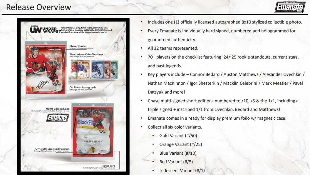 Key players include – Connor Bedard / Auston Matthews / Alexander Ovechkin / Nathan MacKinnon / Igor Shesterkin / Macklin Celebrini / Mark Messier / Pavel Datsyuk and more!